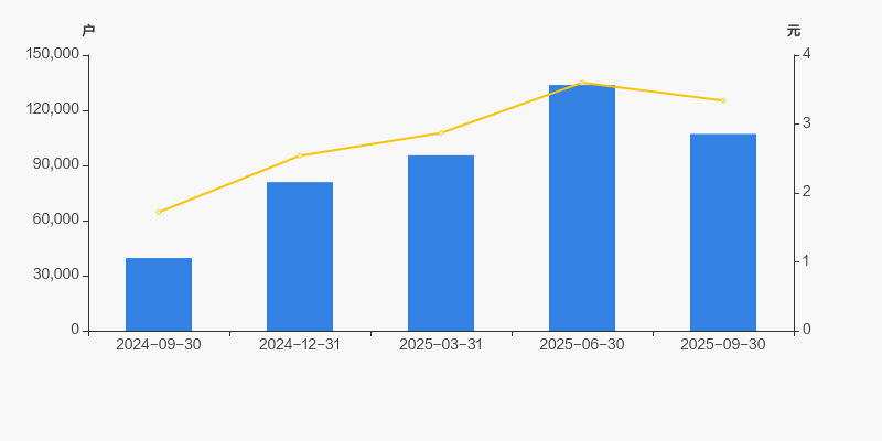 2024年9月30日至今,公司股东户数成倍增长,区间涨幅达170.75%。2024年9月30日至2025年9月30日区间股价上涨94.19%。