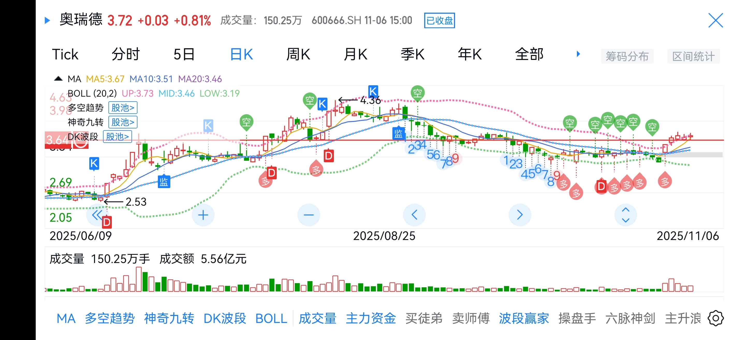 $奥瑞德(SH600666)$ 给奥瑞德画了条线,大家自己分析!