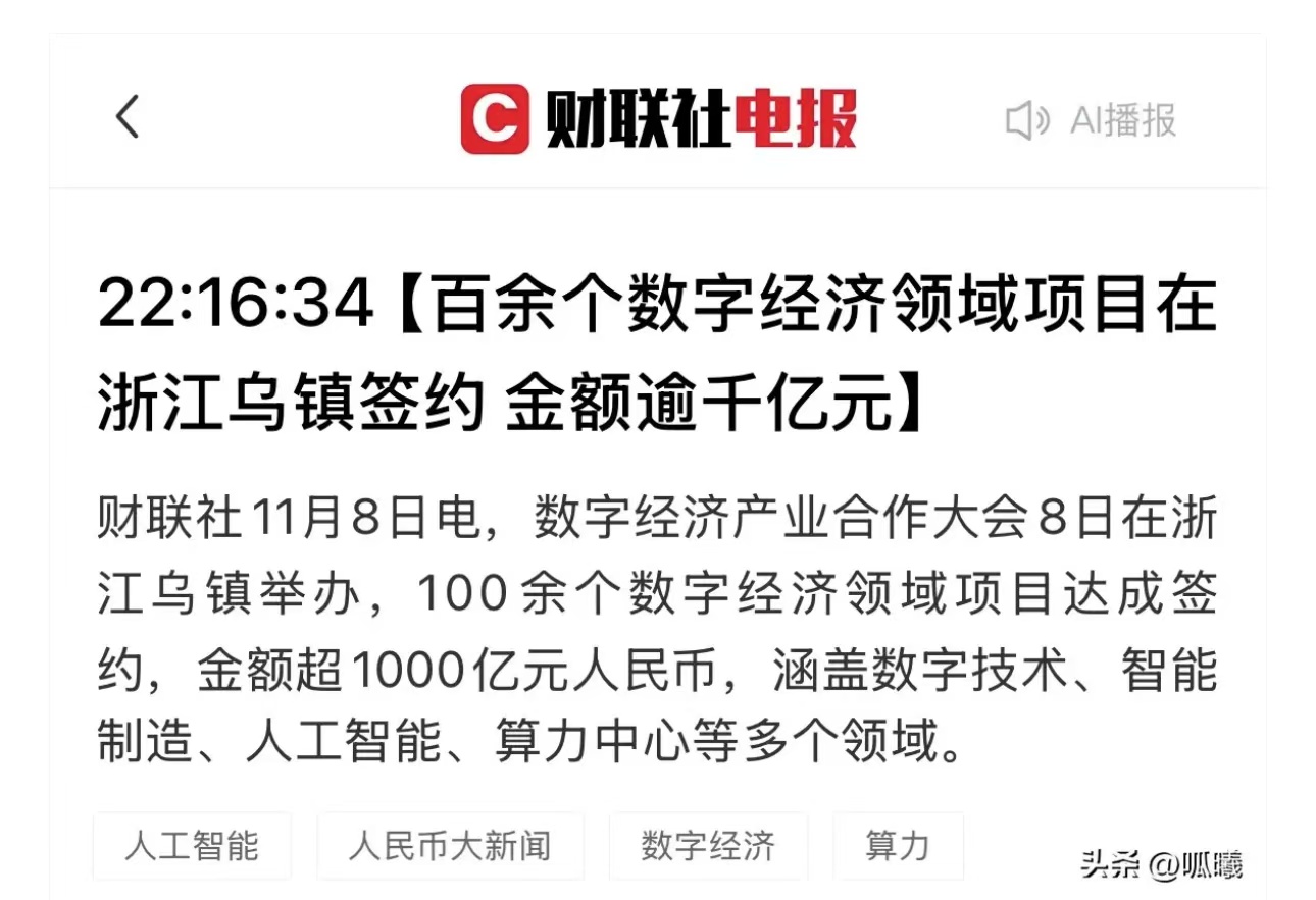 11月8号,杭州乌镇数字大会,数字签约金额逾千亿!