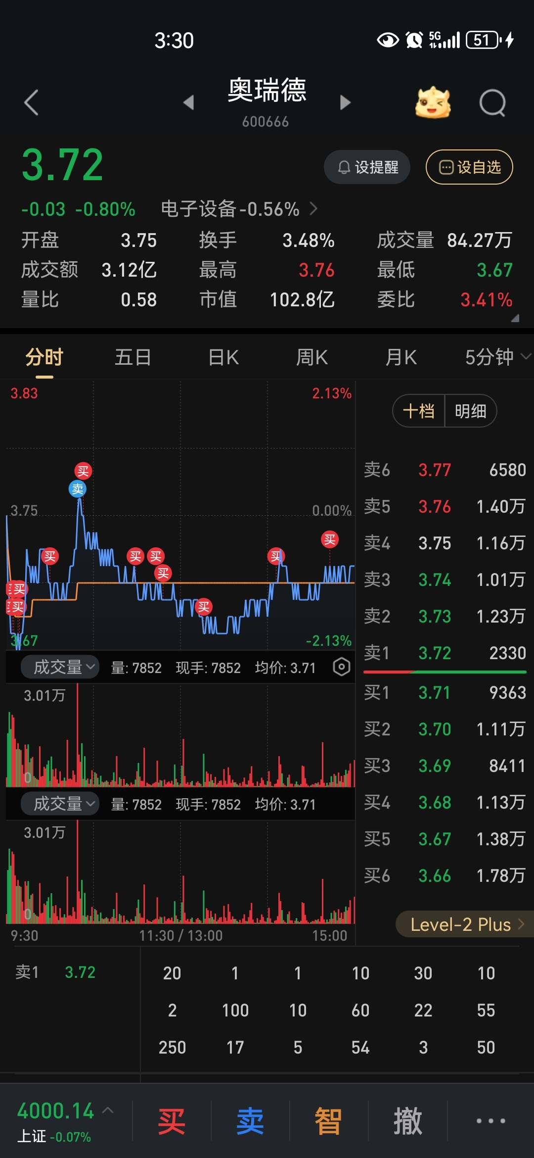 $奥瑞德(SH600666)$ 随便你震荡,就是不下车。