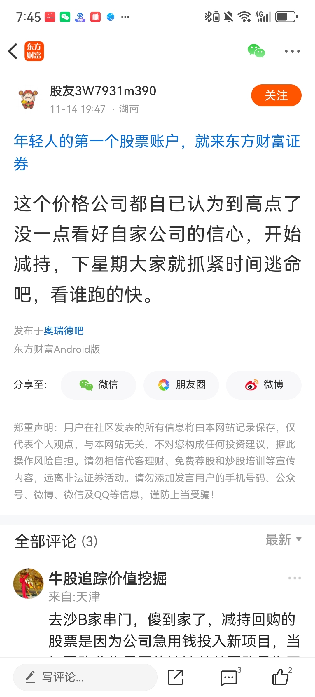 温馨提示: 1.根据《证券法》规定,禁止编造、传播虚假信息或者误导性信息,扰乱证券市场;2.用户在本社区发表的所有资料、言论等仅代表个人观点,与本网站立场无关,不对您构成任何投资建议。用户应基于自己的独立判断,自行决定证券投资并承担相应风险。《东方财富社区管理规定》