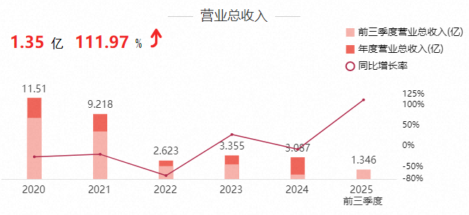 2025年前三季度:营收1.35亿元,同比大增111.97%,