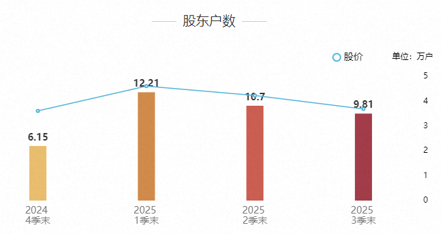 但狂欢背后暗藏分歧。12月2日龙虎榜净卖出3.35亿元,其中国联民生证券宁波分公司单日抛售2.66亿元,沪股通席位亦减持2.13亿元。与此对应的是股东户数变化:截至9月30日,股东人数较6月末减少8863人至9.81万人,筹码集中度提升的同时,机构资金却呈撤退态势。