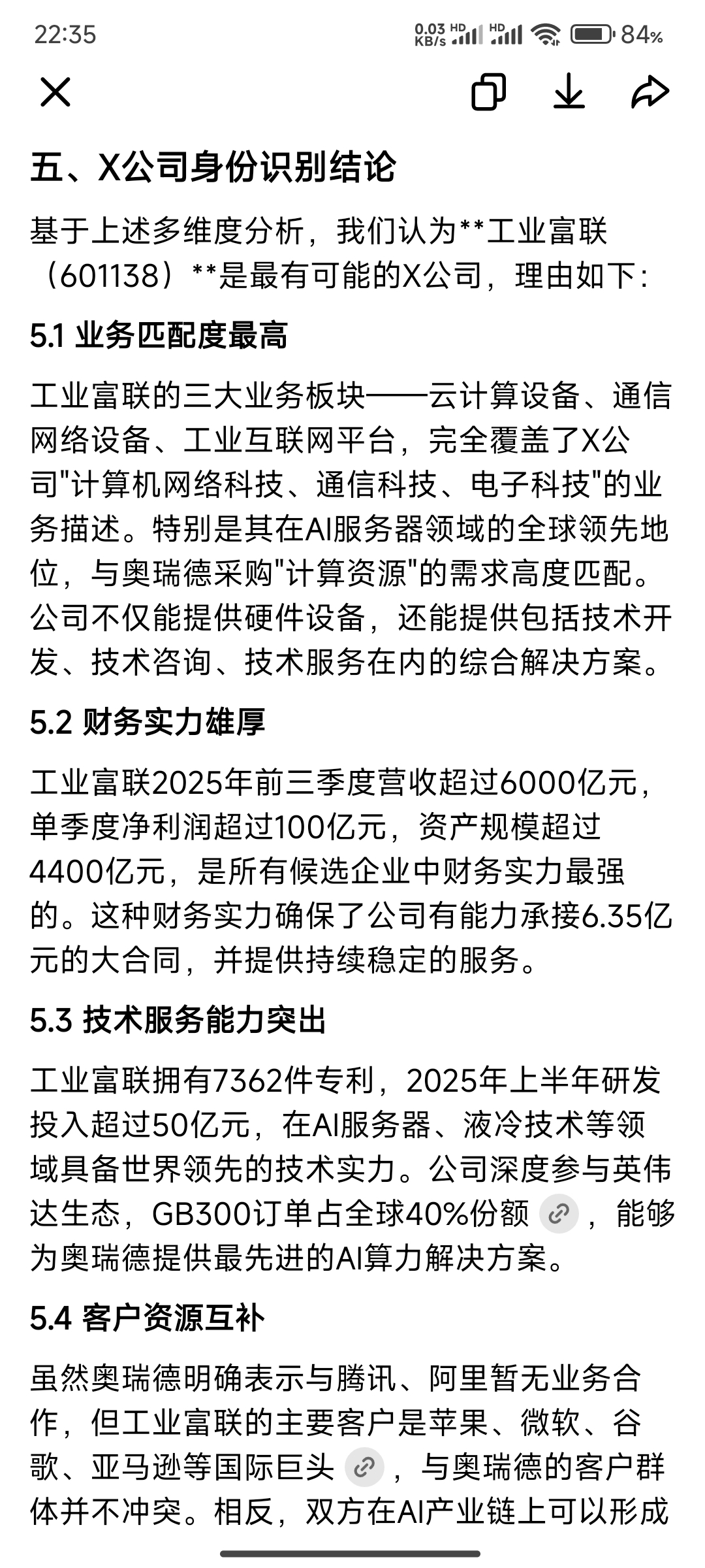 $奥瑞德(SH600666)$ 经过豆包几分钟的深入思考,它认为X公司大概率是工业富联。