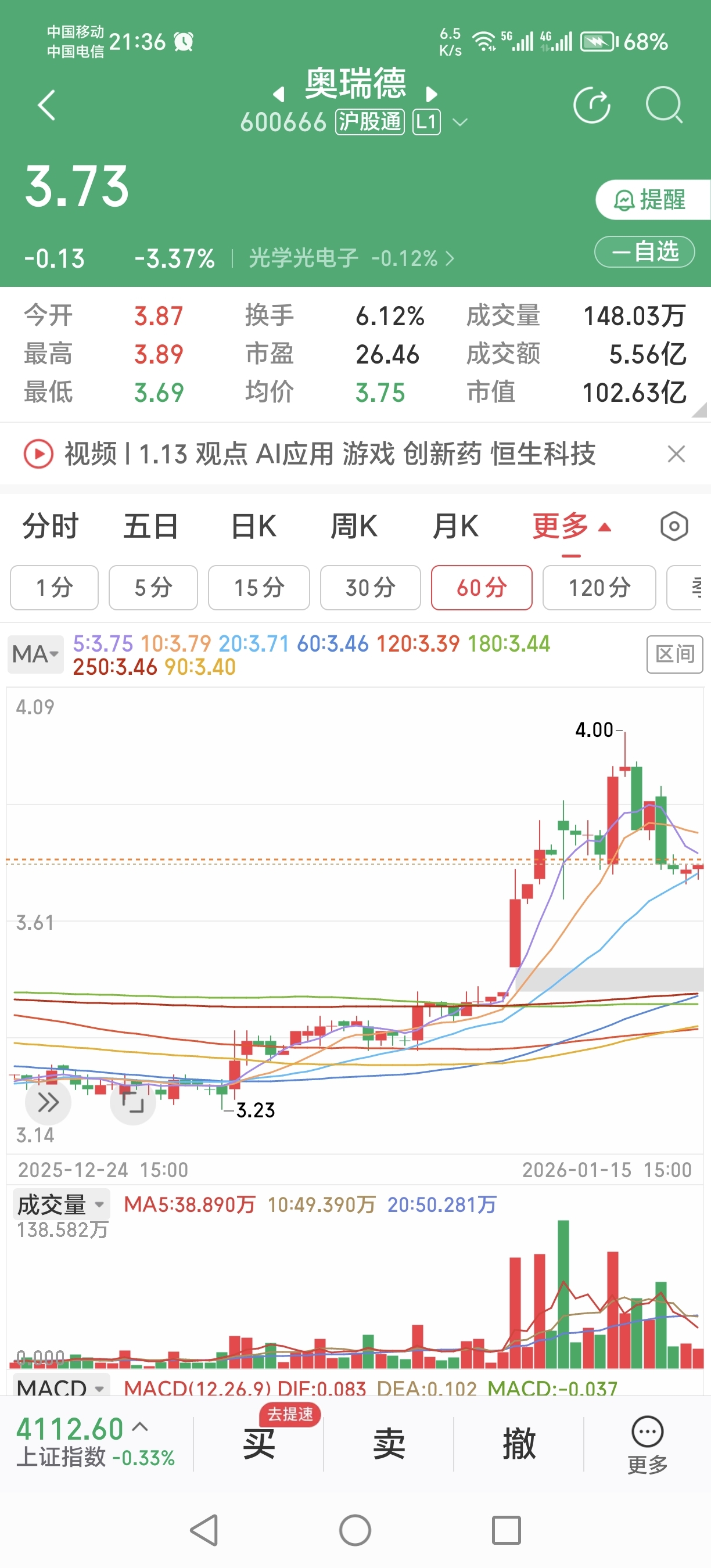 $奥瑞德(SH600666)$ 明天涨停收午盘,3.73+0.37=4.1