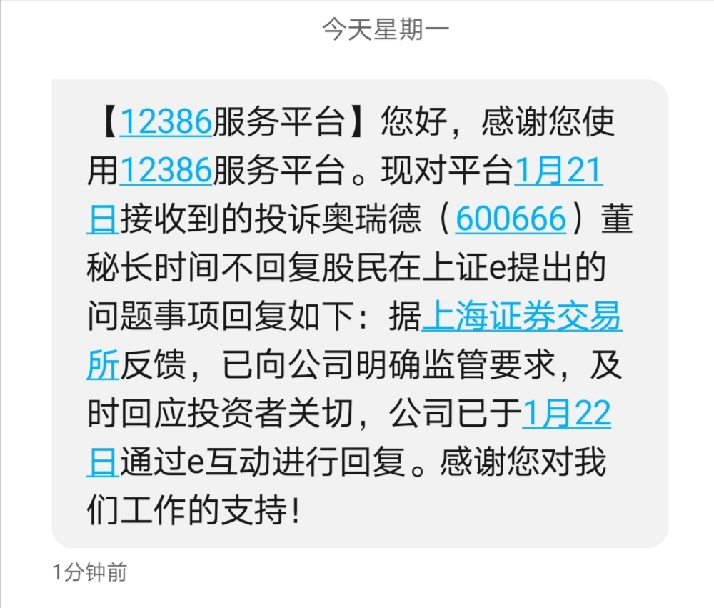 $奥瑞德(SH600666)$ 我的问题,一个没回,继续