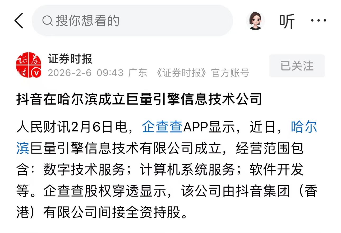 抖音在哈尔滨成立巨量引擎公司,算力必须跟上