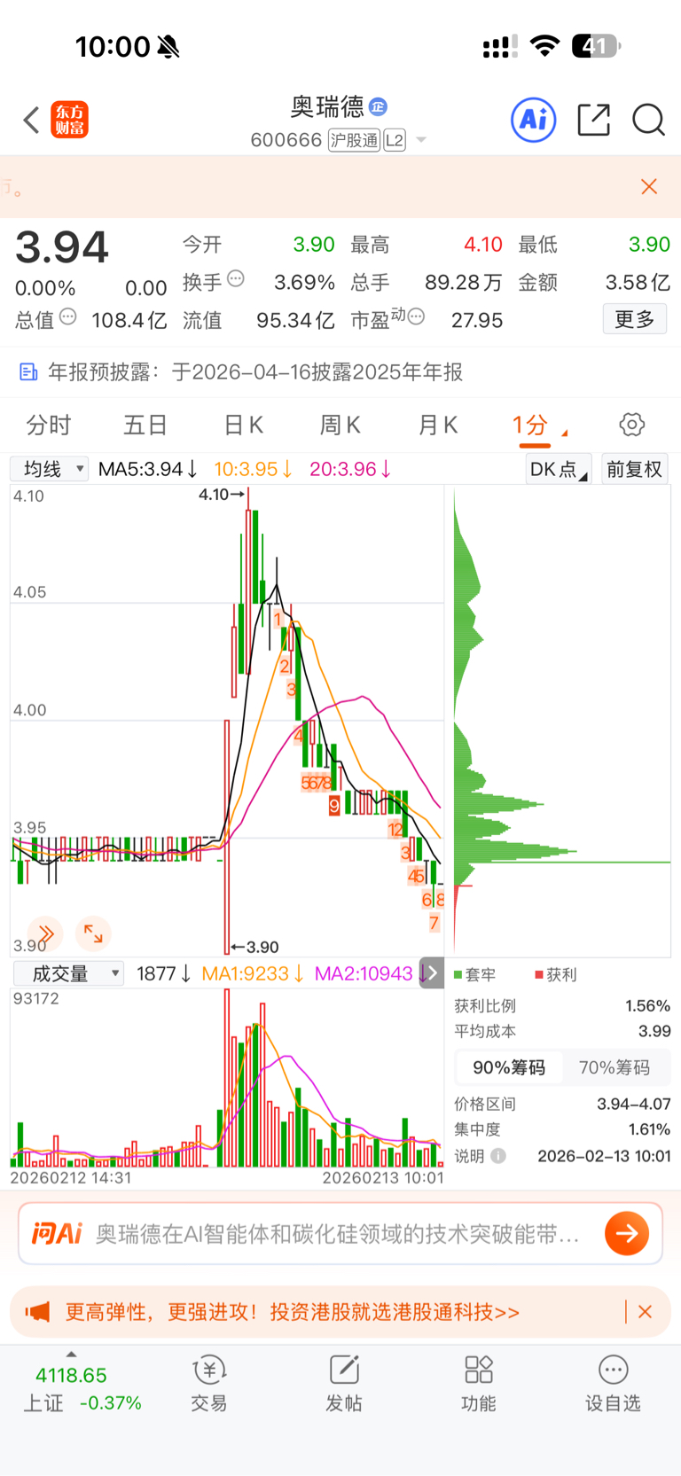 $奥瑞德(SH600666)$ 这种票真没必要拿着了,小单拉大单砸,这种出货手法操盘手真的菜