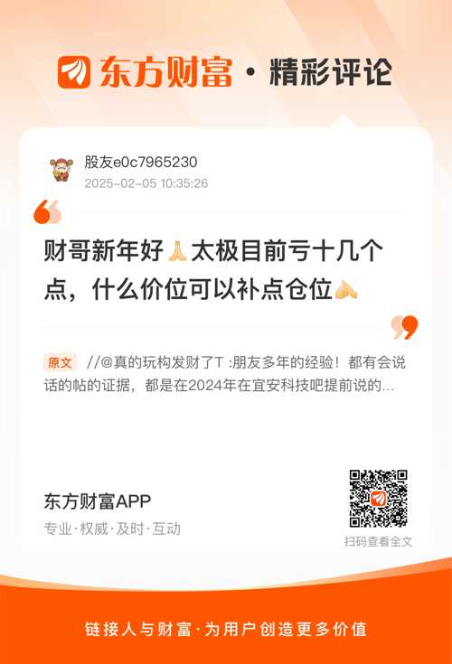 温馨提示: 1.根据《证券法》规定,禁止编造、传播虚假信息或者误导性信息,扰乱证券市场;2.用户在本社区发表的所有资料、言论等仅代表个人观点,与本网站立场无关,不对您构成任何投资建议。用户应基于自己的独立判断,自行决定证券投资并承担相应风险。《东方财富社区管理规定》