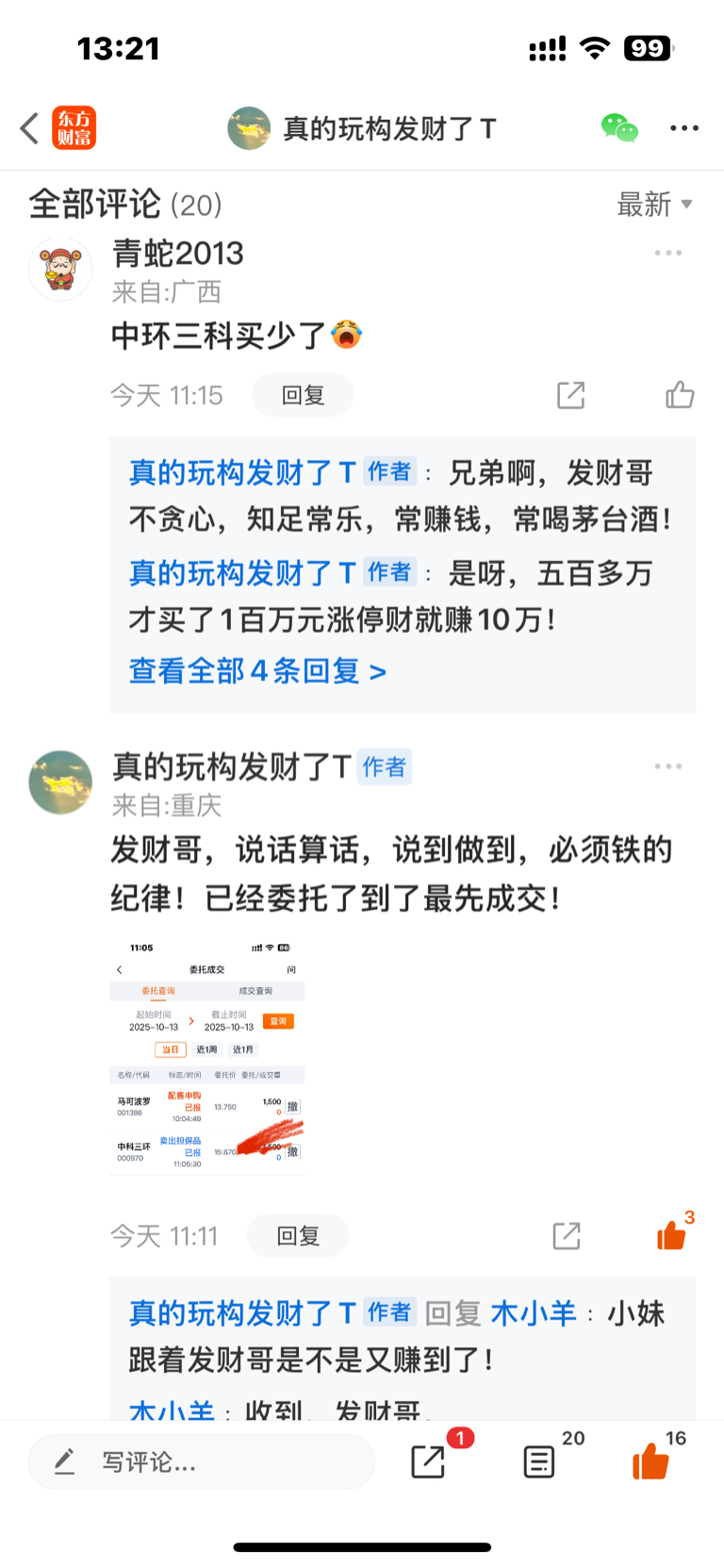 $太极实业(SH600667)$ 关注的兄弟姐妹们又赚钱了,发财哥买卖股票都是提前说的,上午上周星期四,星期五提前提醒买入中科三环多少价位买多少价位卖都有不说话的铁的证据可以查询!