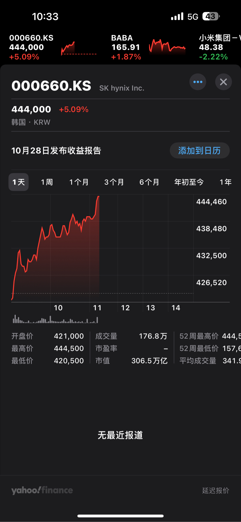 $太极实业(SH600667)$ 海力士大涨