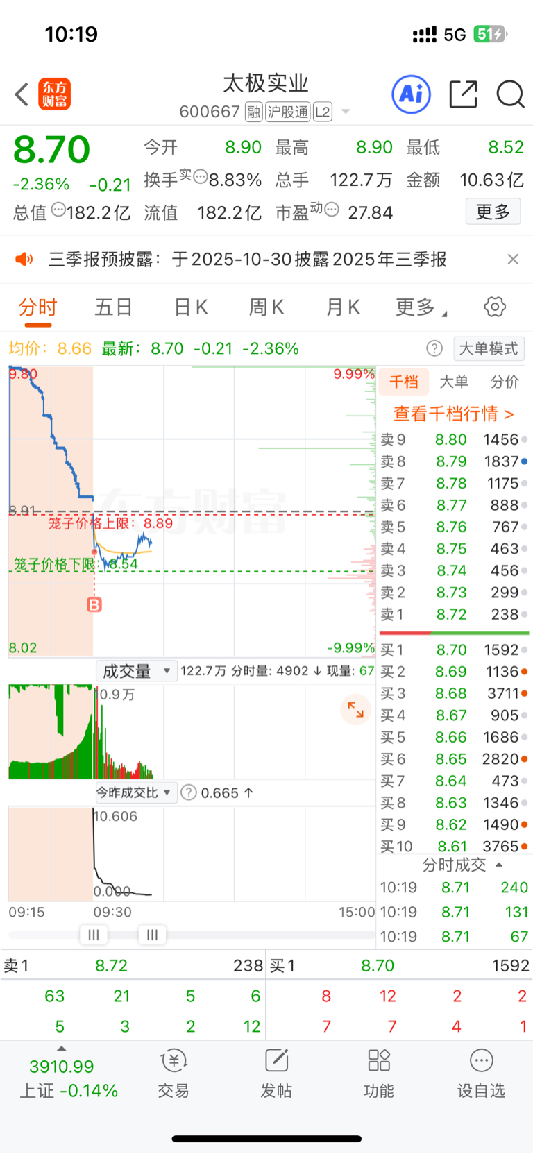 $太极实业(SH600667)$ 加仓,卖掉合肥,买回太极。这个主力试盘过好几次,是要过前高的,只是这几天大盘不行,打乱了节奏。