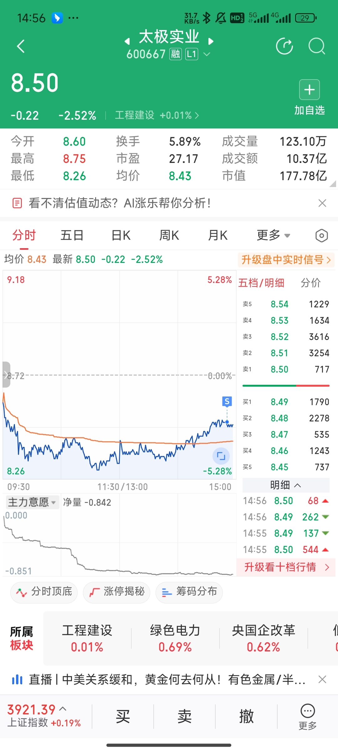 $太极实业(SH600667)$ 亏1个多点跑了,还是早盘卖出不够果断