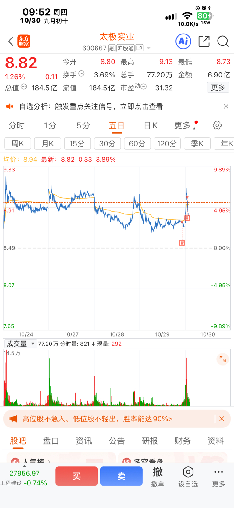 $太极实业(SH600667)$ 卖点成了买,想买别的发现没钱了