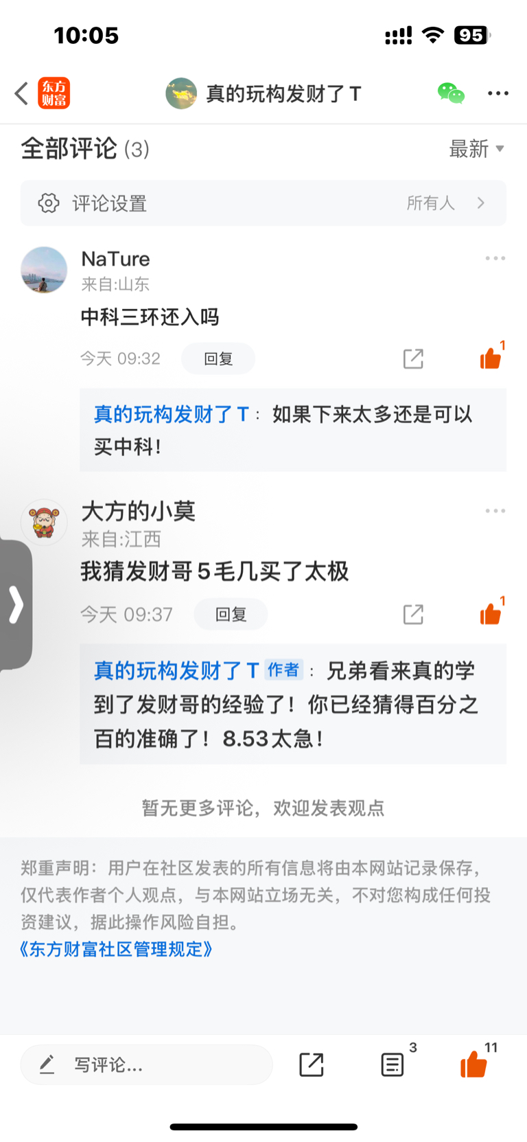 温馨提示: 1.根据《证券法》规定,禁止编造、传播虚假信息或者误导性信息,扰乱证券市场;2.用户在本社区发表的所有资料、言论等仅代表个人观点,与本网站立场无关,不对您构成任何投资建议。用户应基于自己的独立判断,自行决定证券投资并承担相应风险。《东方财富社区管理规定》