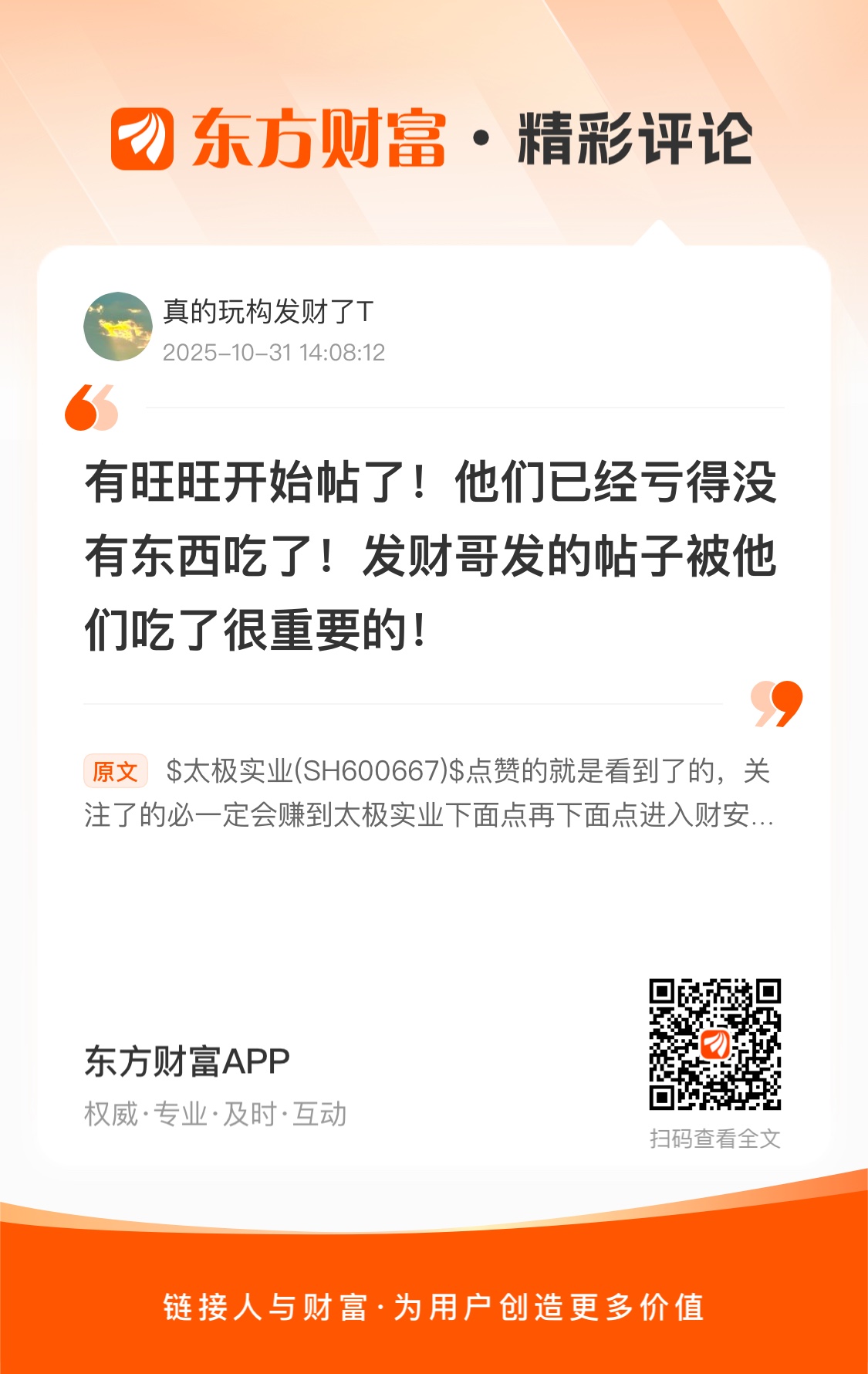 $太极实业(SH600667)$ 点赞的就是看到了的,关注了的必一定会赚到太极实业下面点再下面点进入财安宜!昨天提醒的10月30日提醒山路林里面怎么走今天又印证了提前说的对与错!