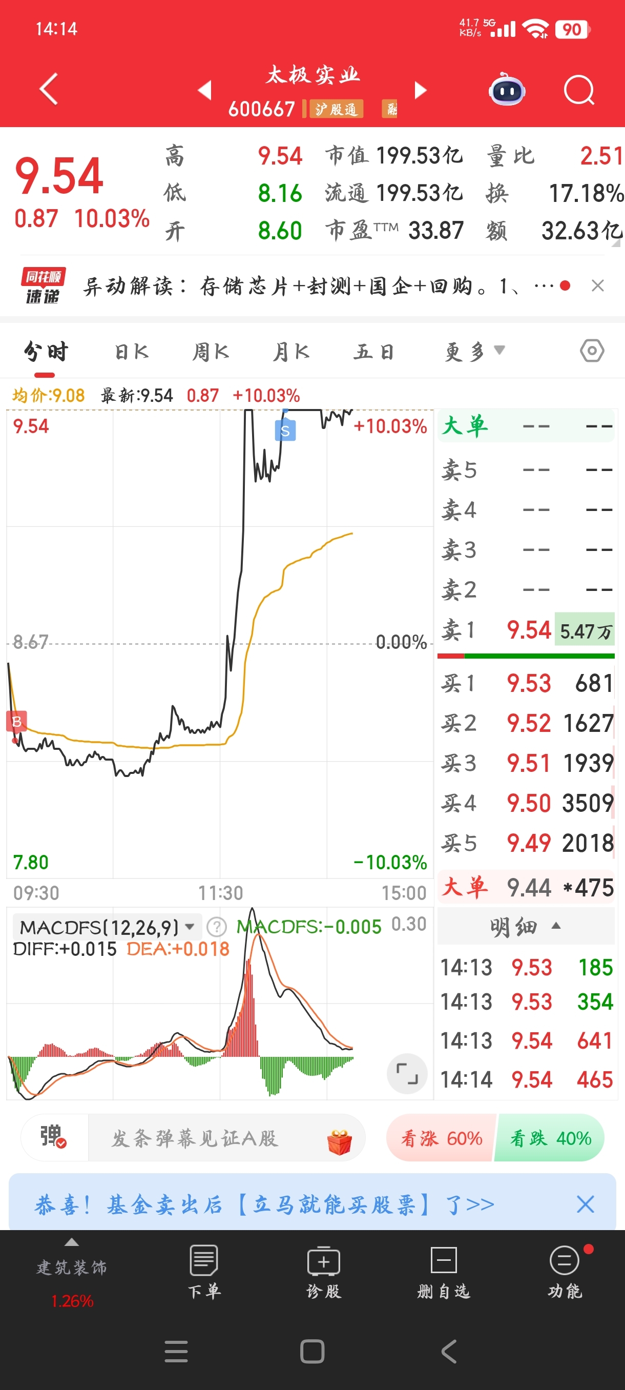 $太极实业(SH600667)$ 炒股十几年了,也就第一回运气这么好