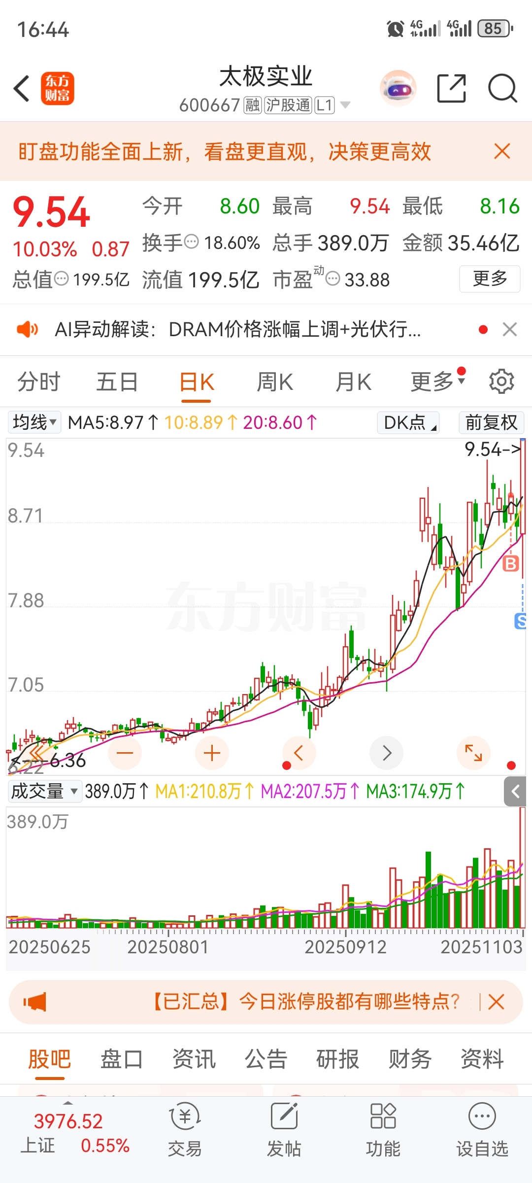$太极实业(SH600667)$ 上午跌五个点没有补仓,少赚15个点