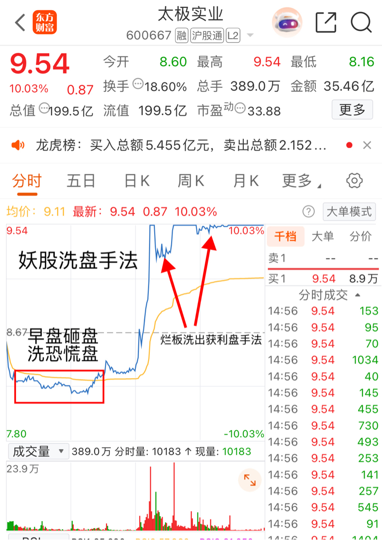 $太极实业(SH600667)$ 今天一字板!昨天妖股洗盘手法!昨天早盘主力采用急杀恐慌盘洗干净,再烂板洗掉短线获利浮筹!主力已高度控盘了,今日不是一字板就是高开缩量涨停!二板定龙头!#复盘记录#
