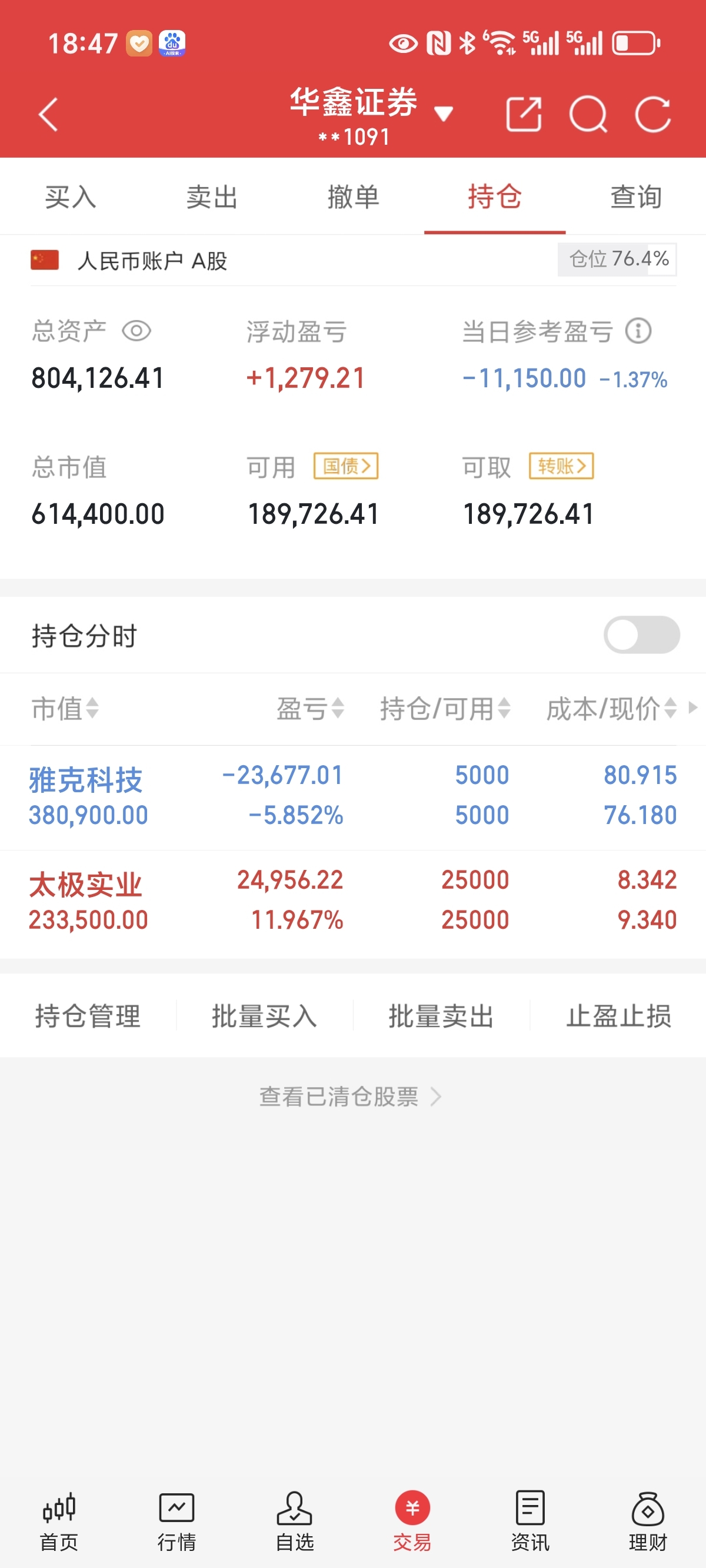 11月4日。-美好记录生活第95天。持:雅克科技,太极实业。免责声明:本文内容为