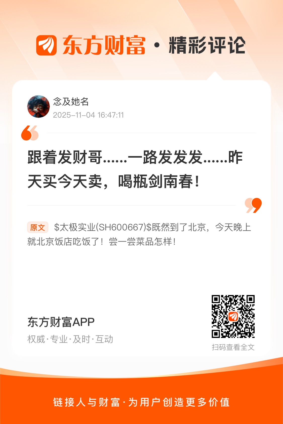 //@念及她名 : 跟着发财哥......一路发发发......昨天买今天卖,喝瓶剑南春!