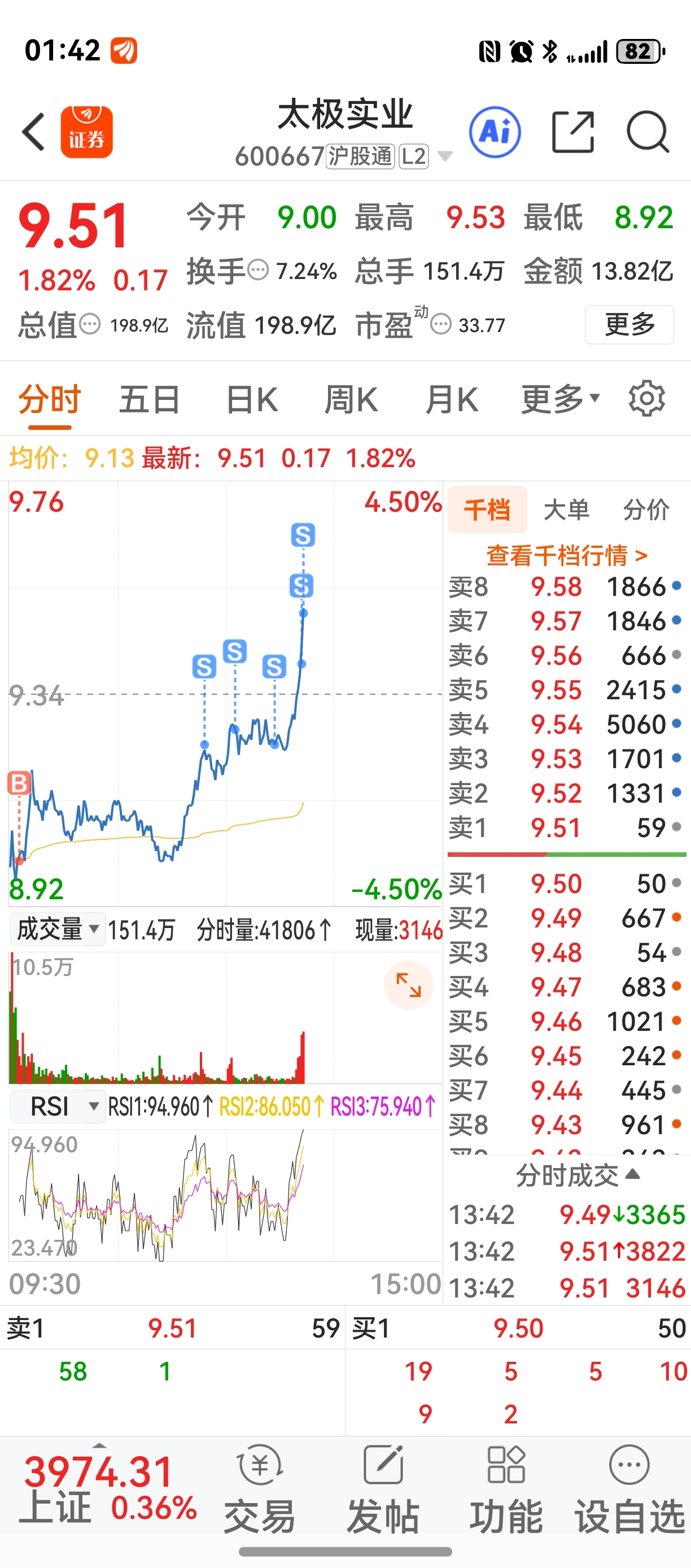 $太极实业(SH600667)$ 哈哈不T飞不行!