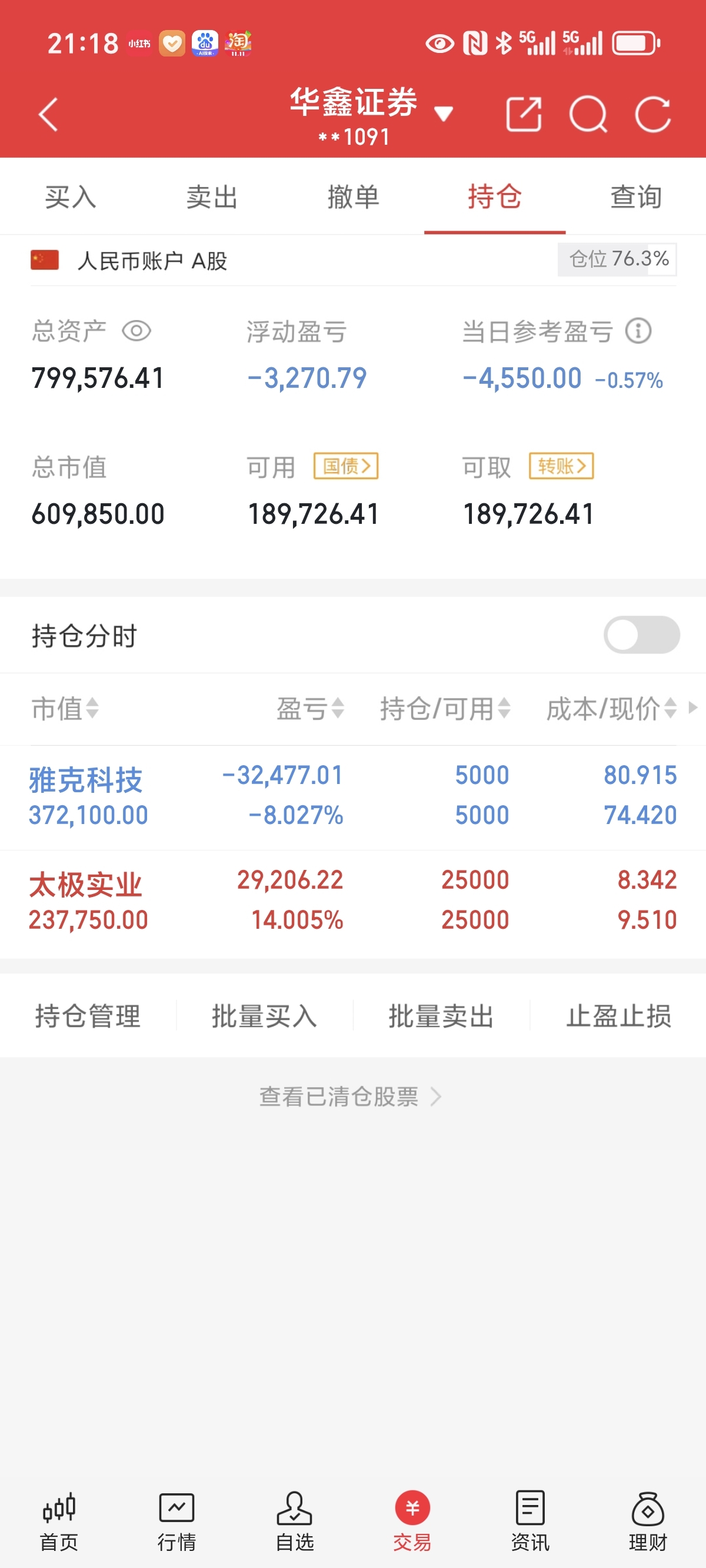 11月5日-美好记录生活第96天。持:雅克科技,太极实业。免责声明:本文内容为个