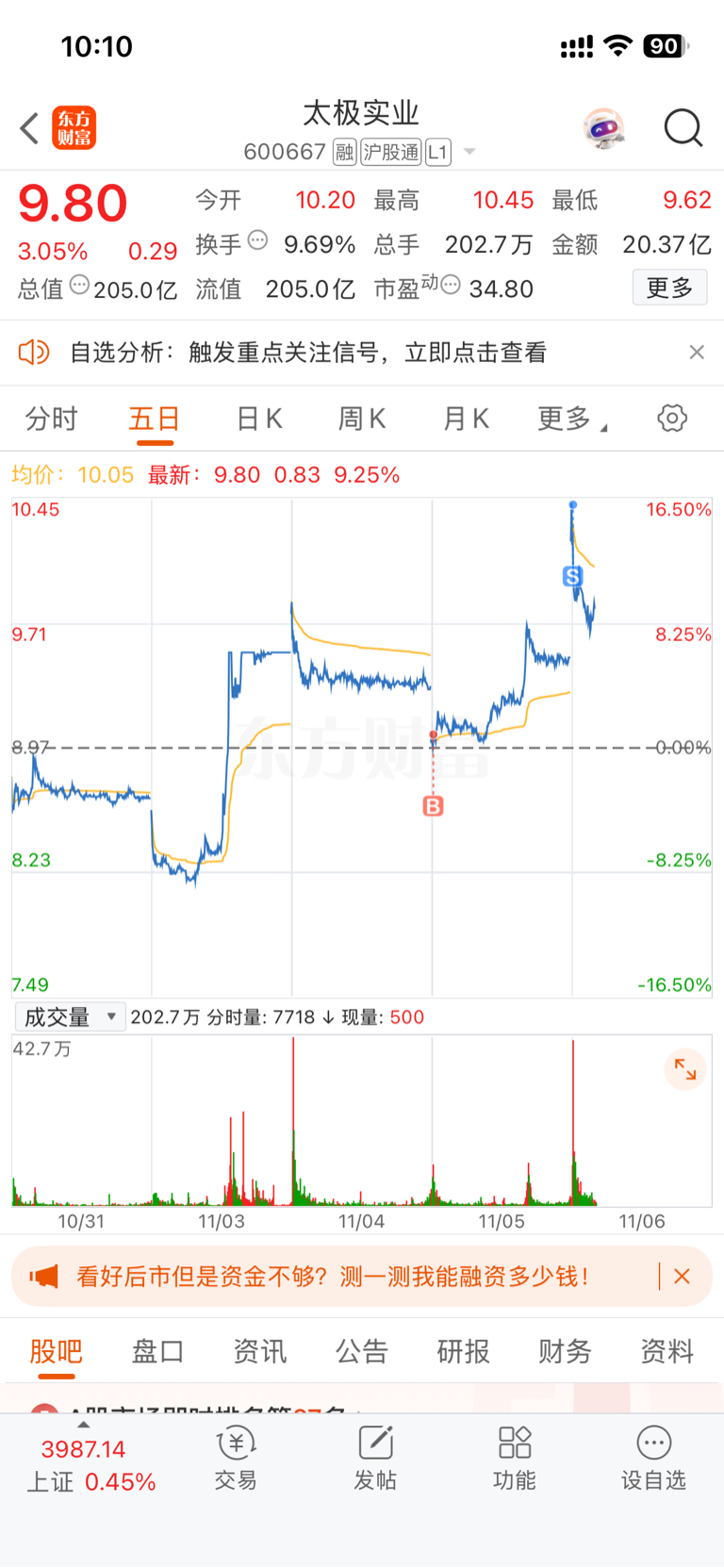 $太极实业(SH600667)$ 这股得30日线进来才安全,这才是打太极