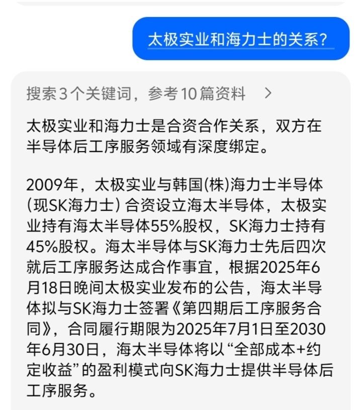 黄仁勋表示:“业务非常强劲,而且按月增长,越来越强。”他称,英伟达的三家AI存储芯片供应商——SK海力士、三星电子和美光科技——都已扩大“巨大产能”为公司提供支持。太极实业和海力士有深度合作关系也是这次代工的受益者。