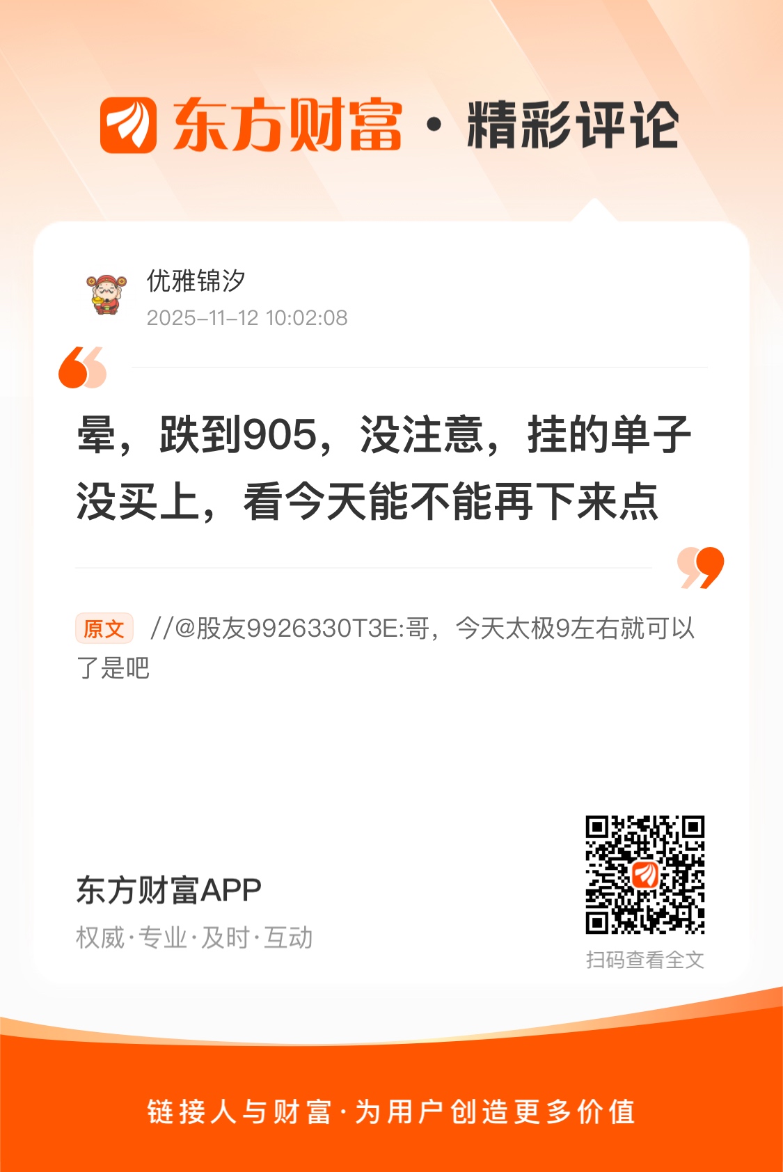 //@优雅锦汐 : 晕,跌到905,没注意,挂的单子没买上,看今天能不能再下来点
