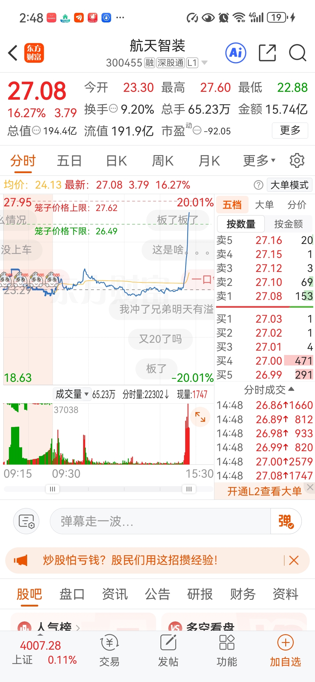 航天智装大涨太极实业,会不会?