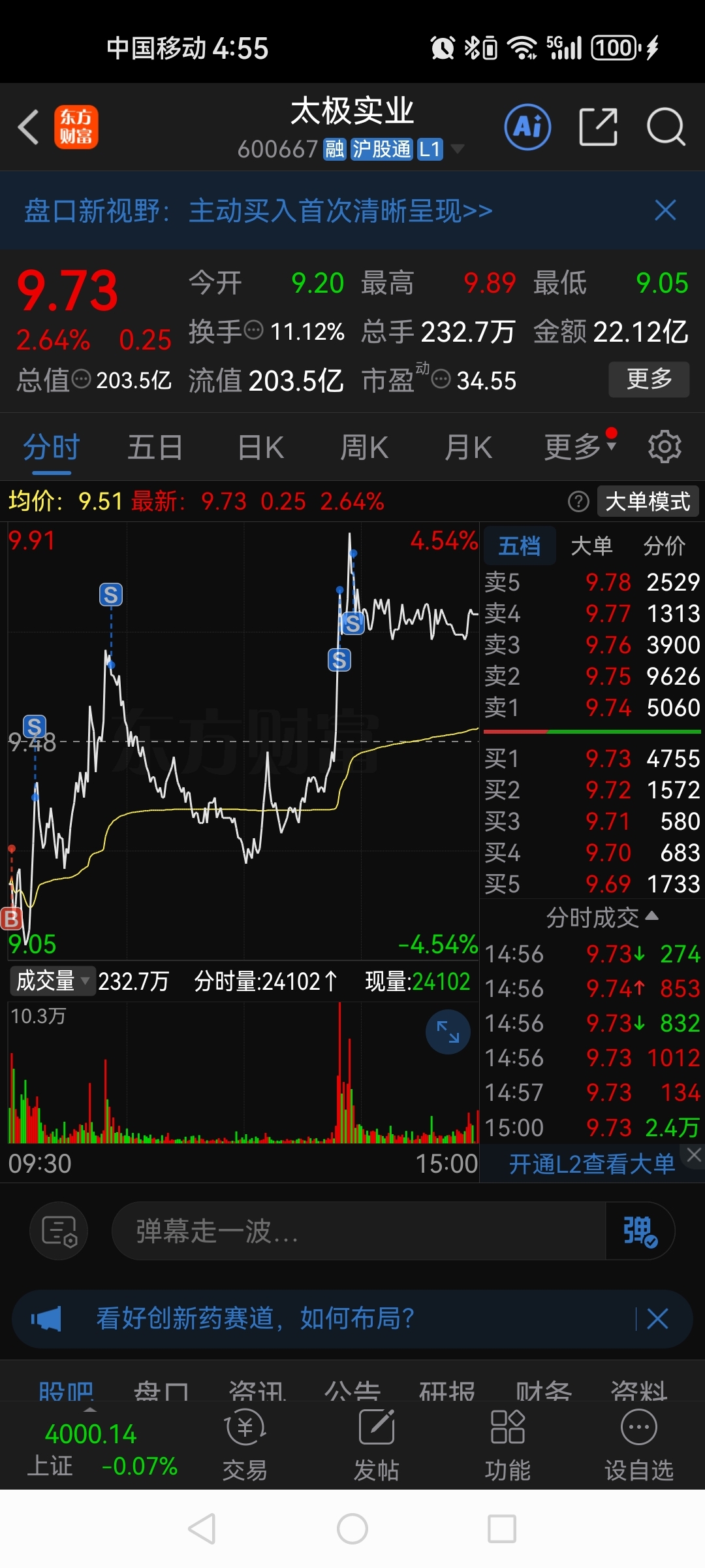 $太极实业(SH600667)$ 所谓低吸高抛应对波段股,就是要敢进舍得出,一开盘就加,分时图出现4个小高点就抓住机会出4次,分仓的意义就在这。明天回抽又是机会,涨就更好。今天存储芯片有资金抢,核聚变钍基熔盐方向今天深洗,按理明天这两板块要冲。