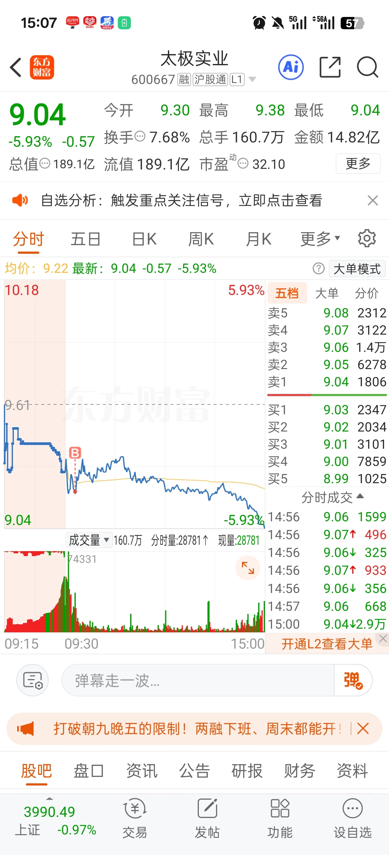 $太极实业(SH600667)$ 俺以为的抄底实则是则是历史大顶,太极你让我没有爱呀