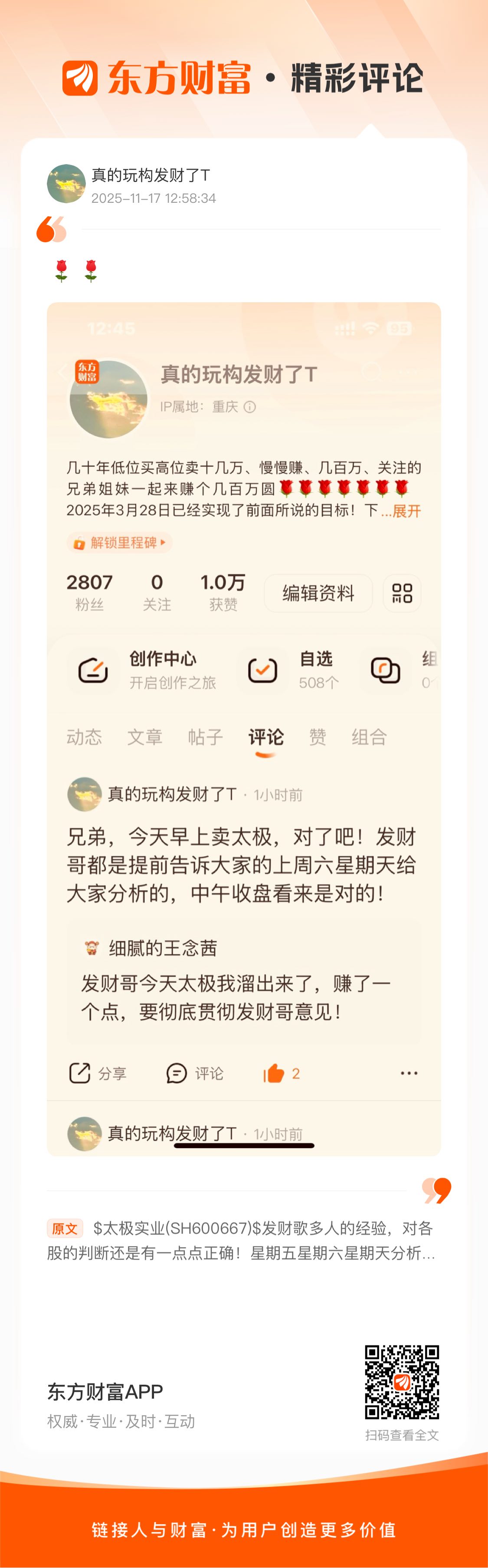 温馨提示: 1.根据《证券法》规定,禁止编造、传播虚假信息或者误导性信息,扰乱证券市场;2.用户在本社区发表的所有资料、言论等仅代表个人观点,与本网站立场无关,不对您构成任何投资建议。用户应基于自己的独立判断,自行决定证券投资并承担相应风险。《东方财富社区管理规定》
