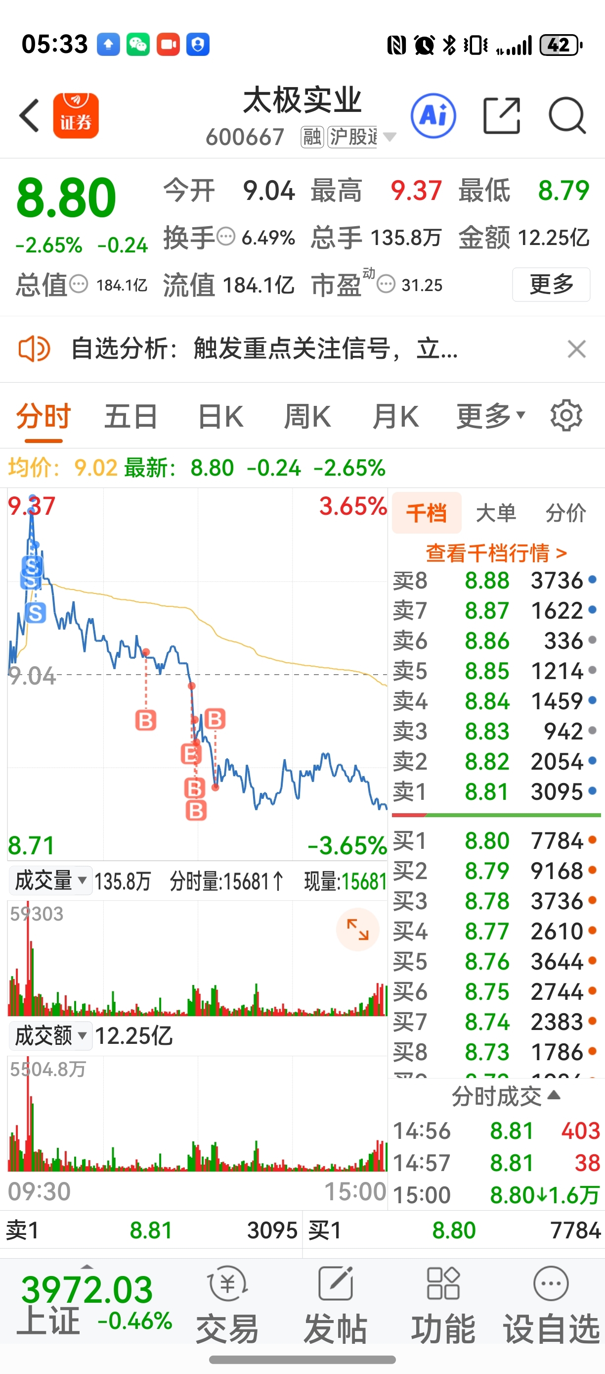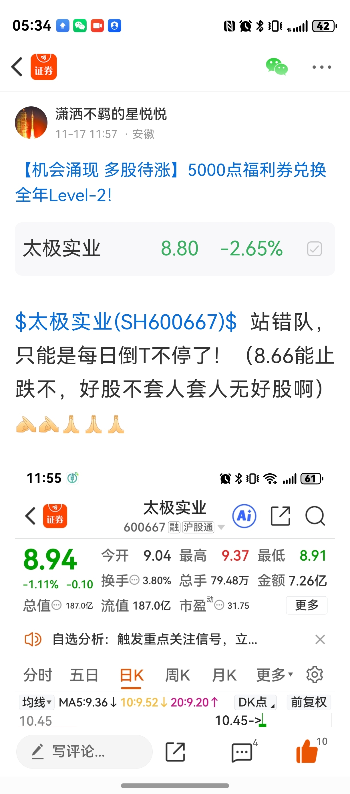哈哈兄弟们对标票,今天的太极走的有点弱了,所以下午8.80左右也没再回补了(属于