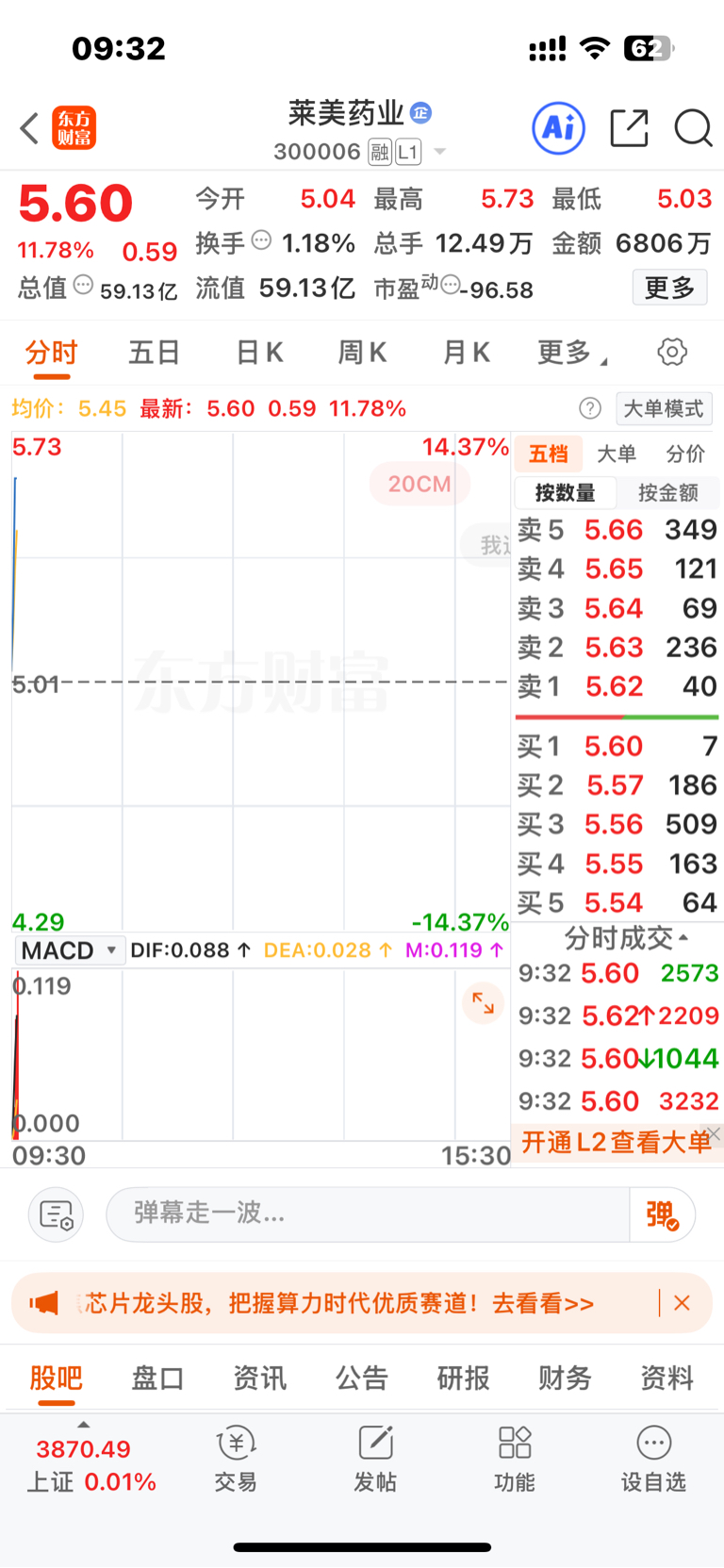 本来昨天说了不想发言出去玩了!前面说过的莱美药业回调几天买入,大家都忘了吧,还有