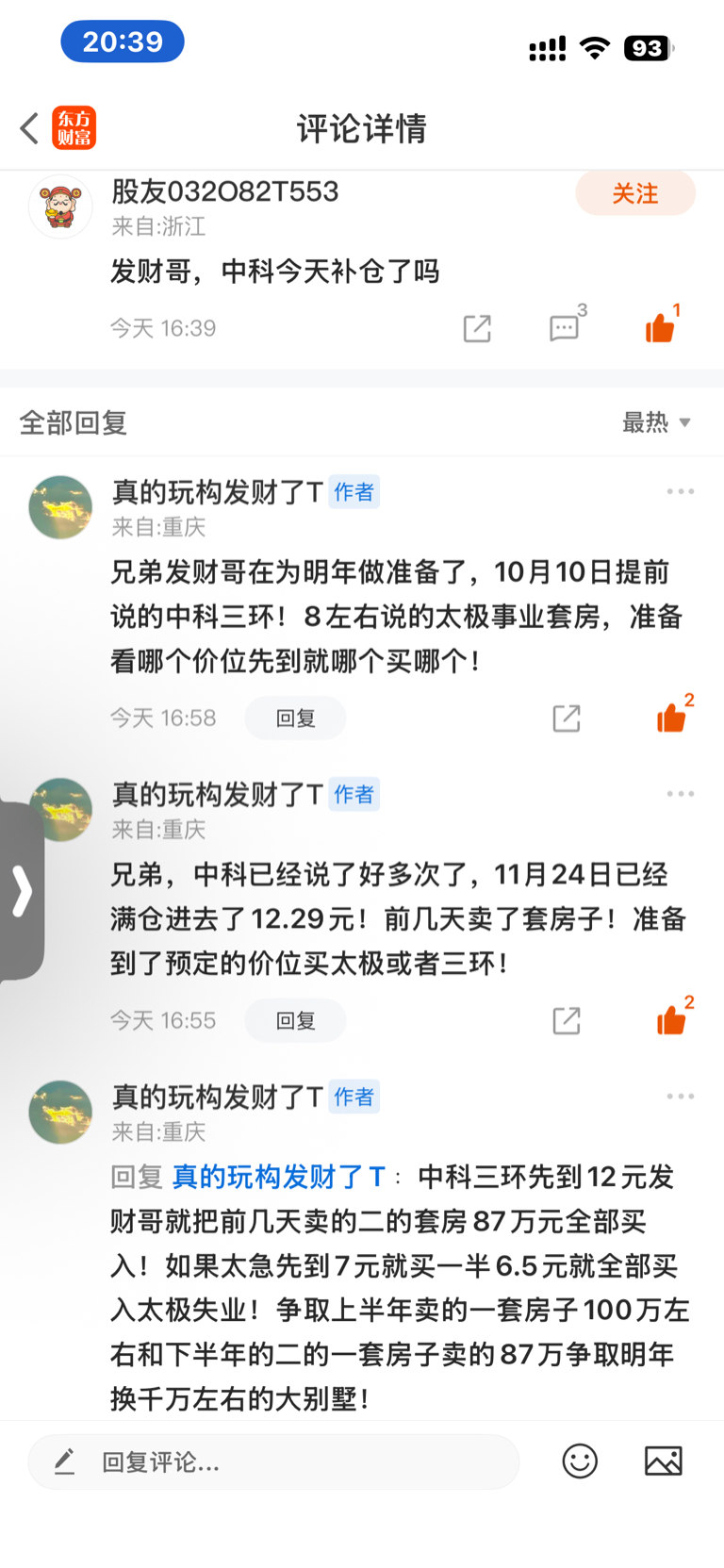 $太极实业(SH600667)$  如果中科三环先到12左右就把前几天卖的二套房子87万继续买入前面10月10日说的12左右买入!发财哥11月24日12.29元巳经重仓买入了前面已经说了好几次了!都有不会说话的贴的证据!太急8的时候发财哥说了7.5少买一点点7左右元半仓43万元6.5元左右就全仓买入剩下的44万元!发财哥在为明年做准备!发财哥10月10日提前说的中科三环涨到多少价位卖!太极就做短线,赚了钱就溜!