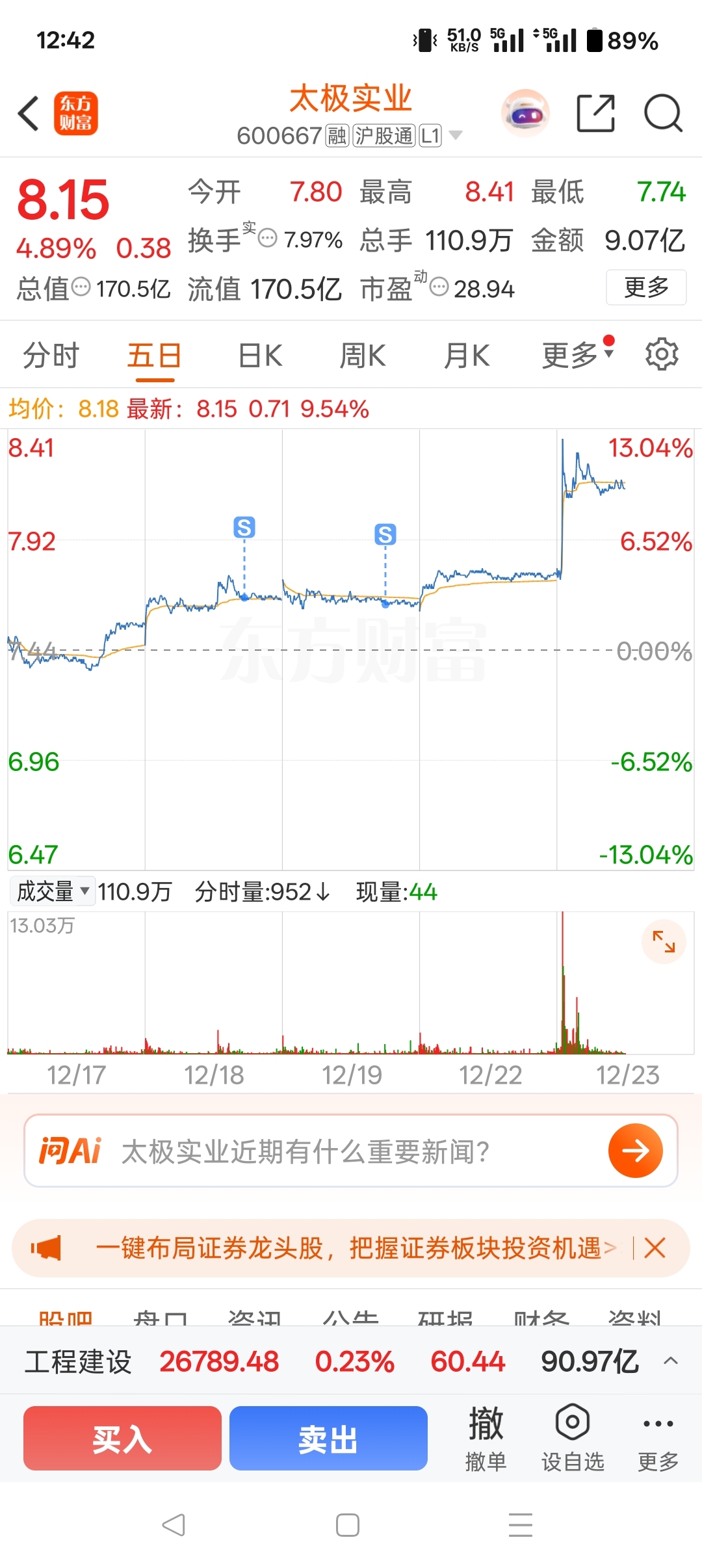 $太极实业(SH600667)$ 我不减仓不拉是吧?