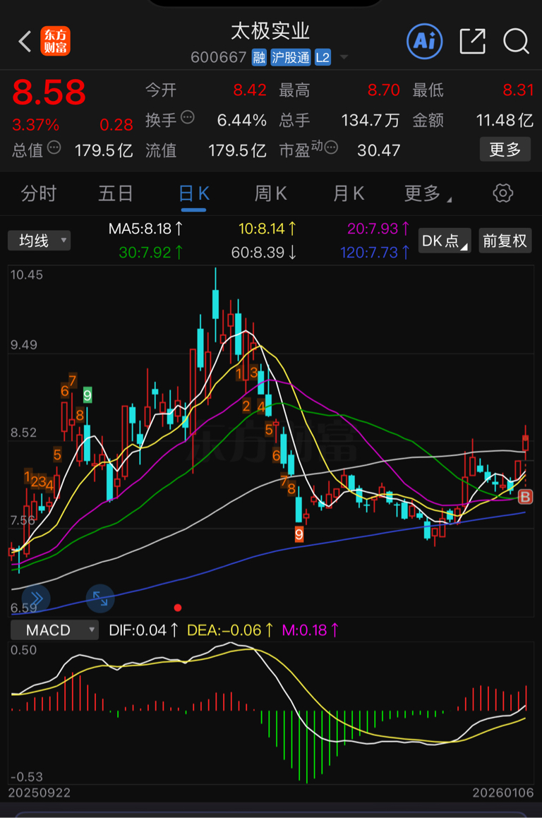 $太极实业(SH600667)$ 吸筹完毕开始加速