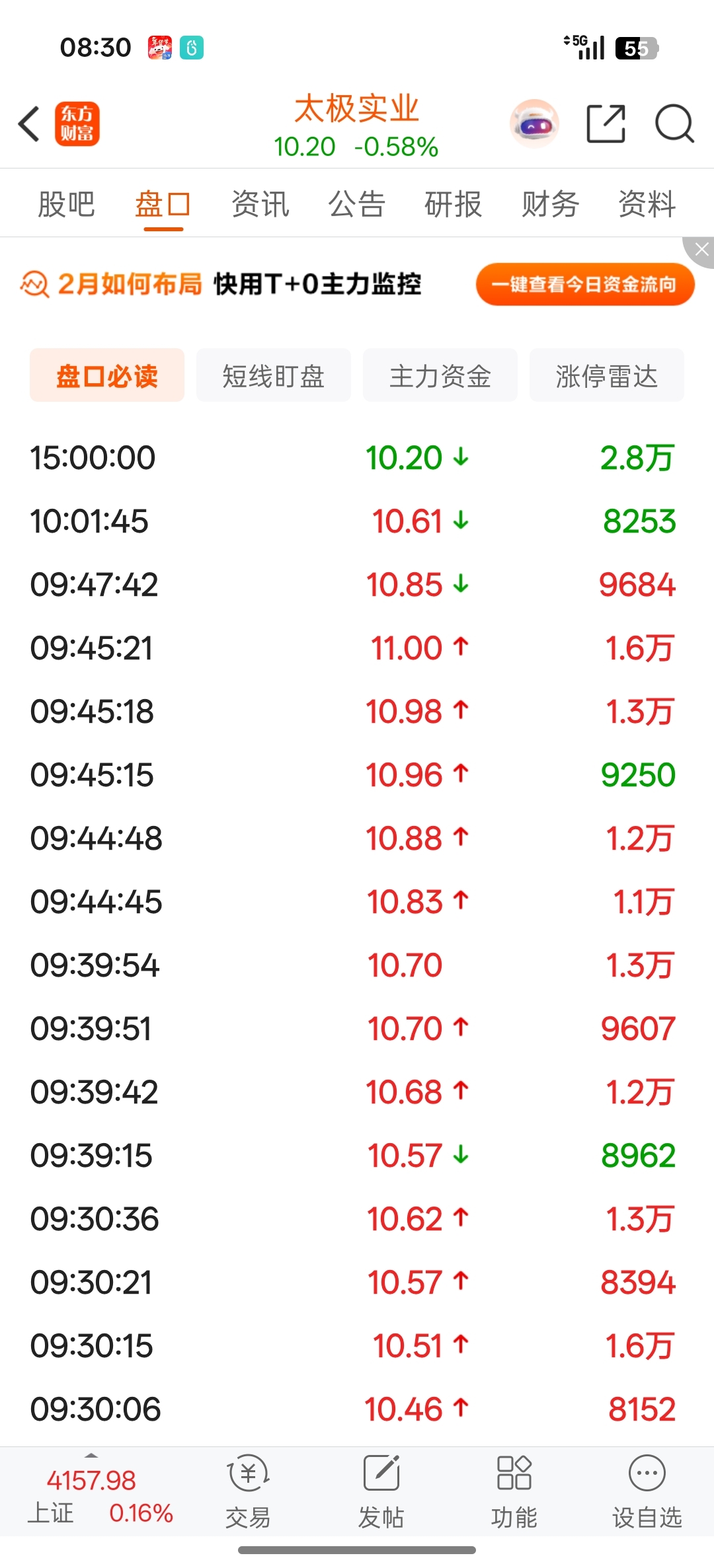$太极实业(SH600667)$ 早上半小时,超大单买了一个多亿后就熄火了,后面全是小单在玩