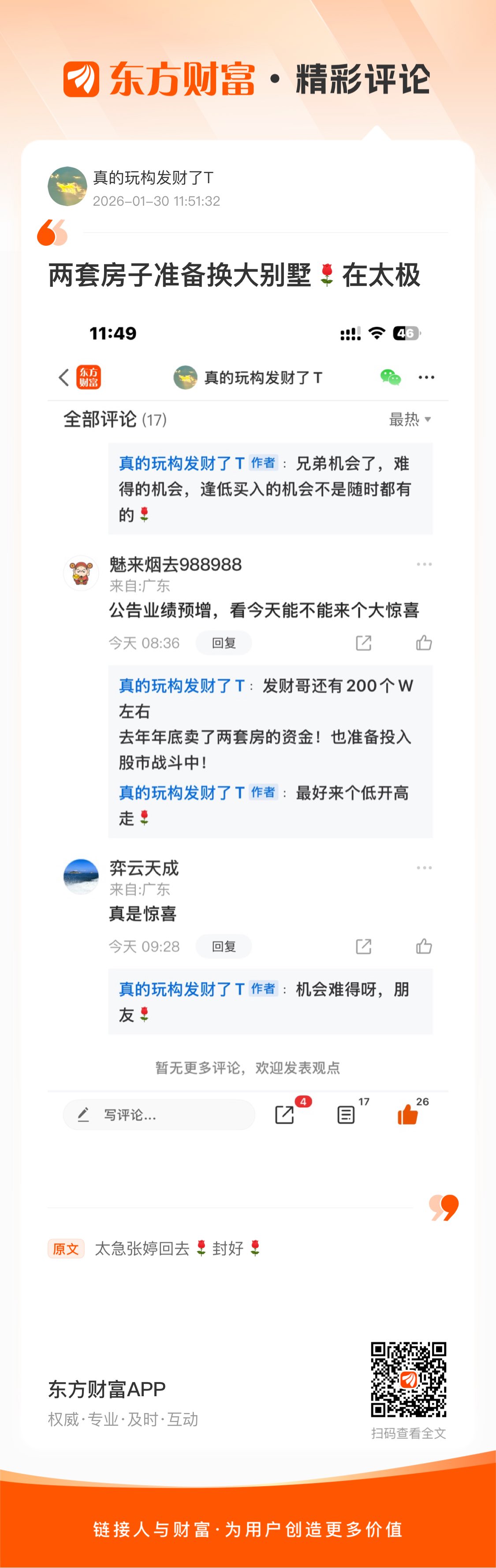 温馨提示: 1.根据《证券法》规定,禁止编造、传播虚假信息或者误导性信息,扰乱证券市场;2.用户在本社区发表的所有资料、言论等仅代表个人观点,与本网站立场无关,不对您构成任何投资建议。用户应基于自己的独立判断,自行决定证券投资并承担相应风险。《东方财富社区管理规定》
