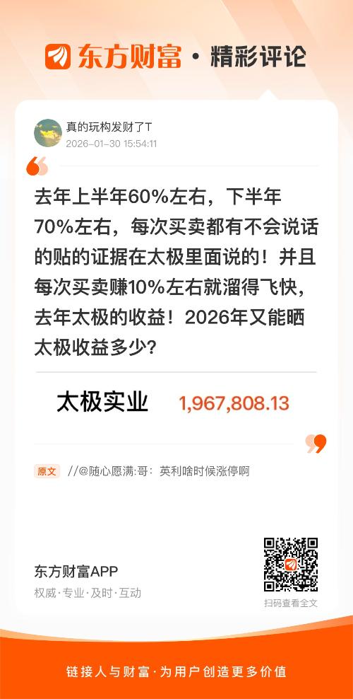 去年上半年60%左右,下半年70%左右,每次买卖都有不会说话的贴的证据在太极里面说的!并且每次买卖赚10%左右就溜得飞快,去年太极的收益!2026年又能晒太极收益多少?