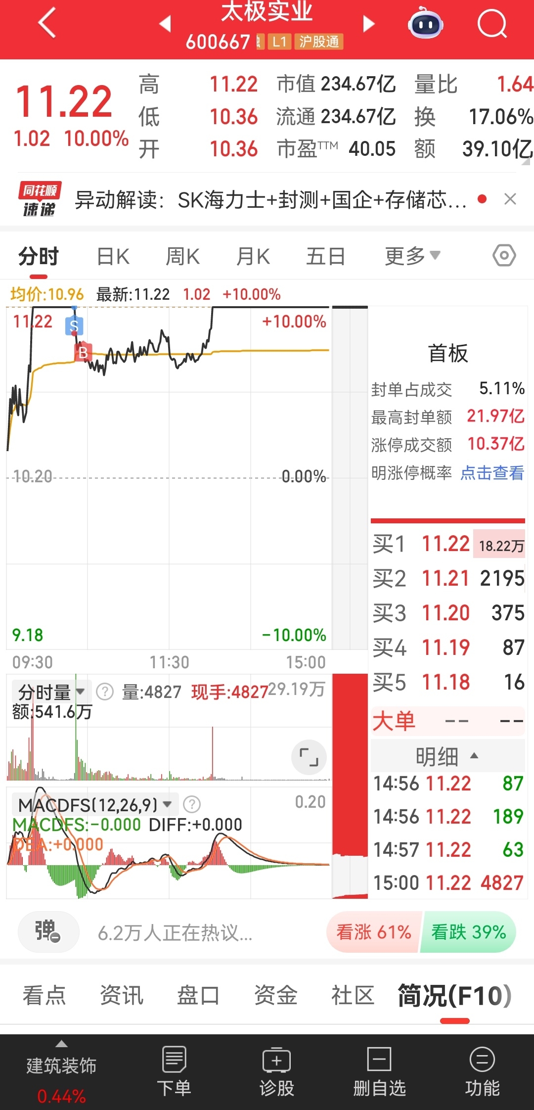 $太极实业(SH600667)$ 明明看到百万大单封住涨停,怎么就破板了,果断做了个T