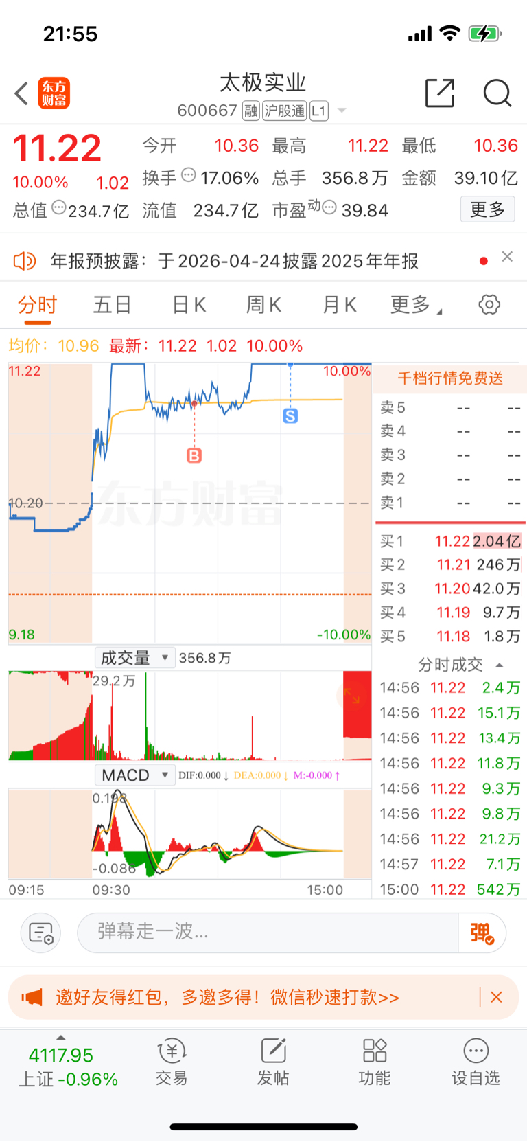 $太极实业(SH600667)$ 老美闪迪疯了,周一溢价肯定有,加仓T出来后悔啊