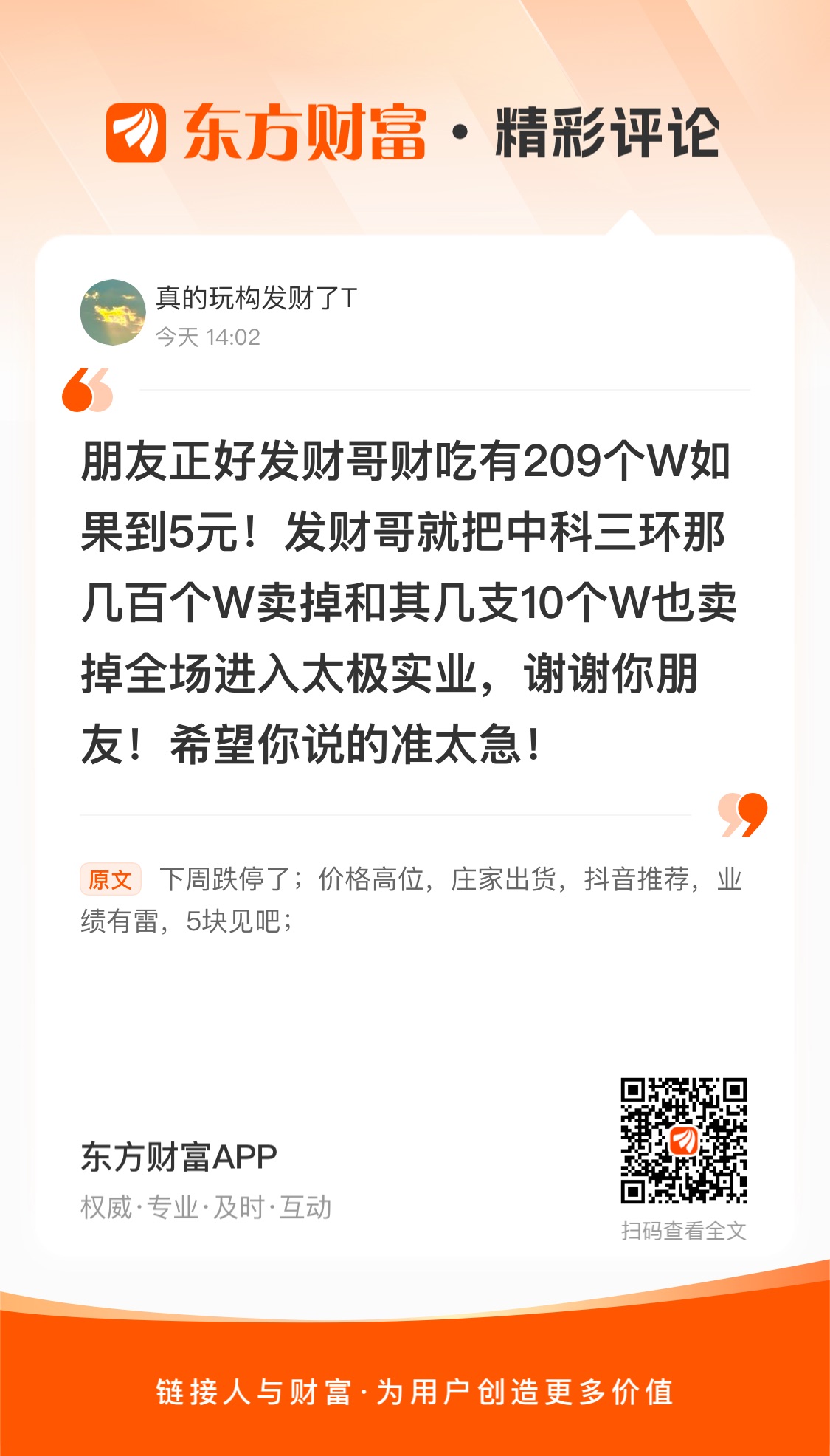 温馨提示: 1.根据《证券法》规定,禁止编造、传播虚假信息或者误导性信息,扰乱证券市场;2.用户在本社区发表的所有资料、言论等仅代表个人观点,与本网站立场无关,不对您构成任何投资建议。用户应基于自己的独立判断,自行决定证券投资并承担相应风险。《东方财富社区管理规定》