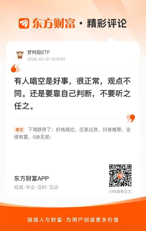 温馨提示: 1.根据《证券法》规定,禁止编造、传播虚假信息或者误导性信息,扰乱证券市场;2.用户在本社区发表的所有资料、言论等仅代表个人观点,与本网站立场无关,不对您构成任何投资建议。用户应基于自己的独立判断,自行决定证券投资并承担相应风险。《东方财富社区管理规定》