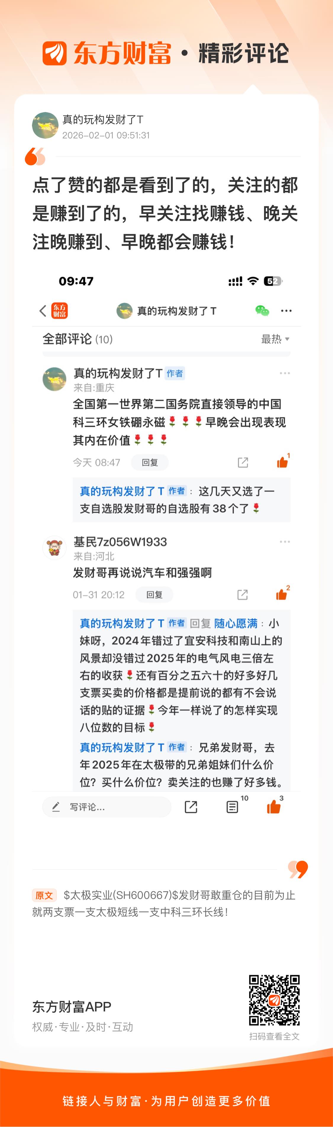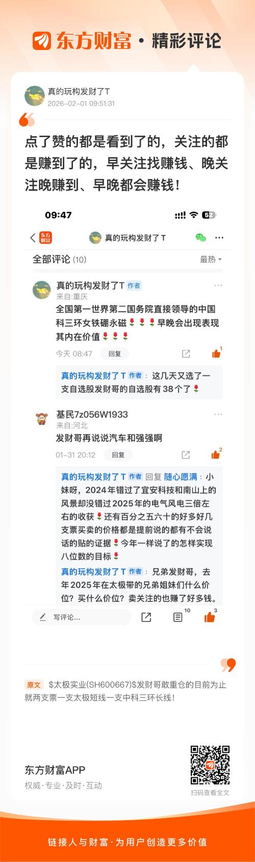 温馨提示: 1.根据《证券法》规定,禁止编造、传播虚假信息或者误导性信息,扰乱证券市场;2.用户在本社区发表的所有资料、言论等仅代表个人观点,与本网站立场无关,不对您构成任何投资建议。用户应基于自己的独立判断,自行决定证券投资并承担相应风险。《东方财富社区管理规定》