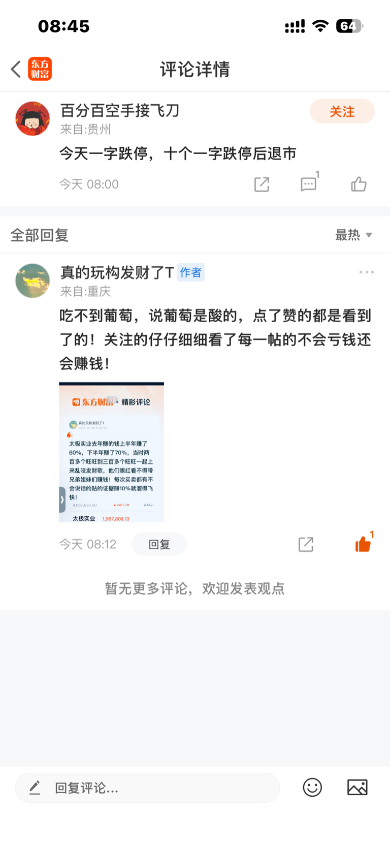 温馨提示: 1.根据《证券法》规定,禁止编造、传播虚假信息或者误导性信息,扰乱证券市场;2.用户在本社区发表的所有资料、言论等仅代表个人观点,与本网站立场无关,不对您构成任何投资建议。用户应基于自己的独立判断,自行决定证券投资并承担相应风险。《东方财富社区管理规定》