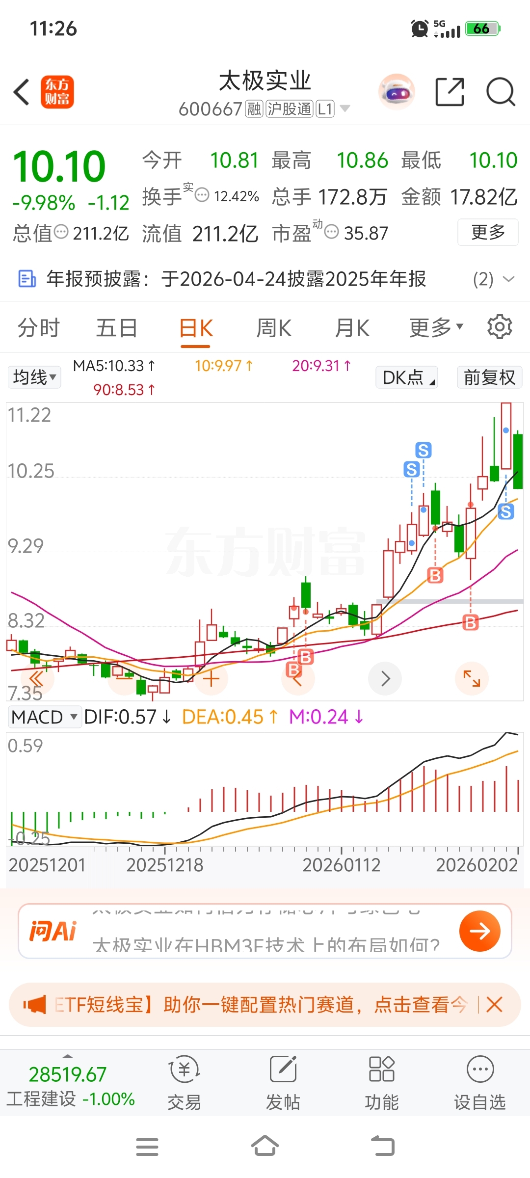 $太极实业(SH600667)$ 太恐怖了。敬畏市场。
