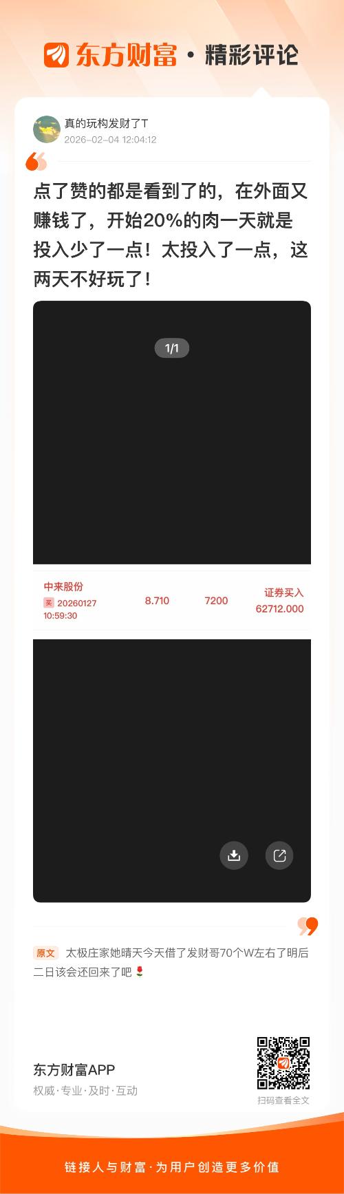 温馨提示: 1.根据《证券法》规定,禁止编造、传播虚假信息或者误导性信息,扰乱证券市场;2.用户在本社区发表的所有资料、言论等仅代表个人观点,与本网站立场无关,不对您构成任何投资建议。用户应基于自己的独立判断,自行决定证券投资并承担相应风险。《东方财富社区管理规定》